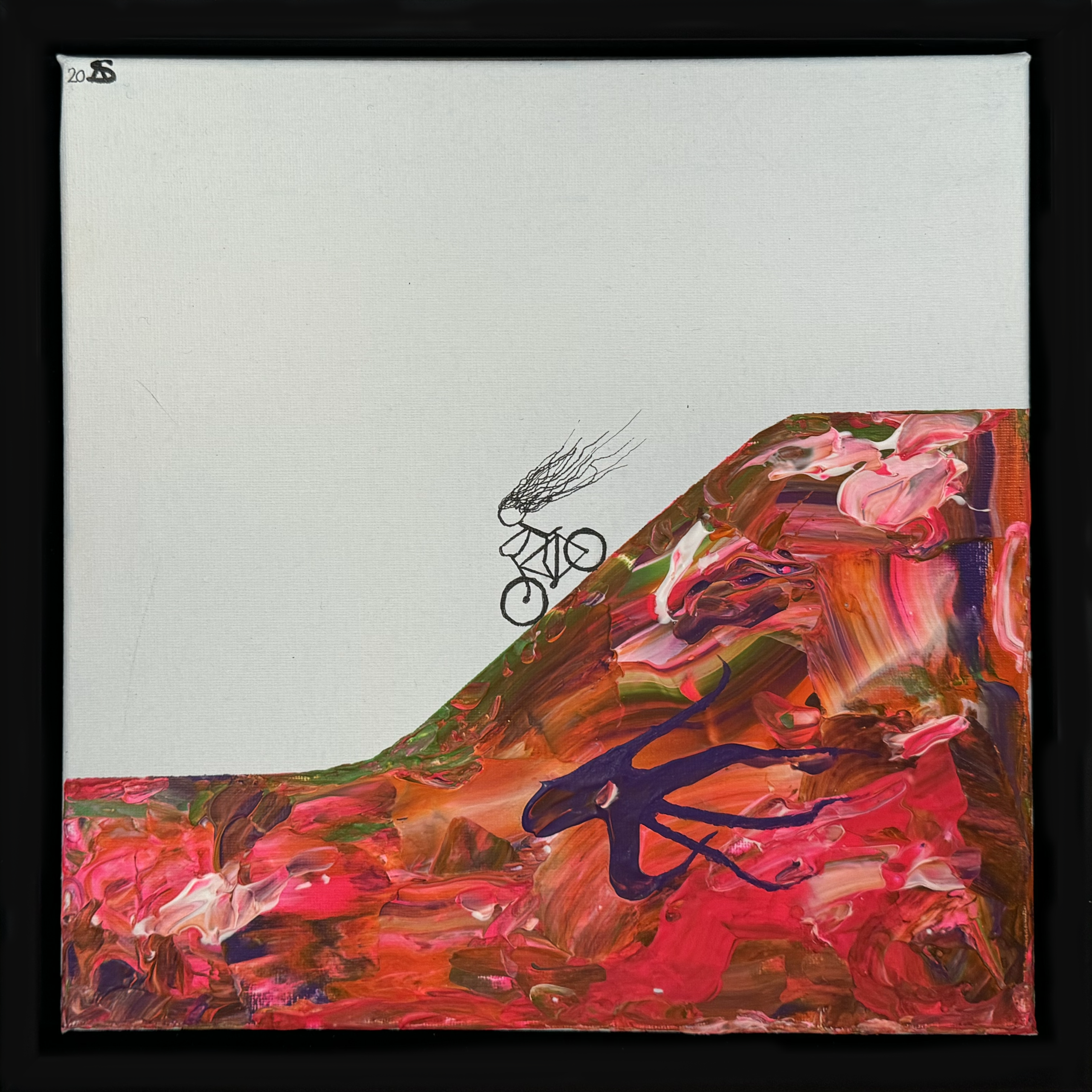 Indrammet, akryl og tusch på lærred